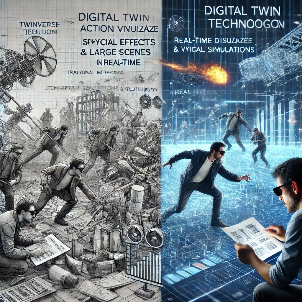 - The production team uses Digital Twin Cities to create a pre-visualisation of action scenes, complete with virtual environments and interactive objects.