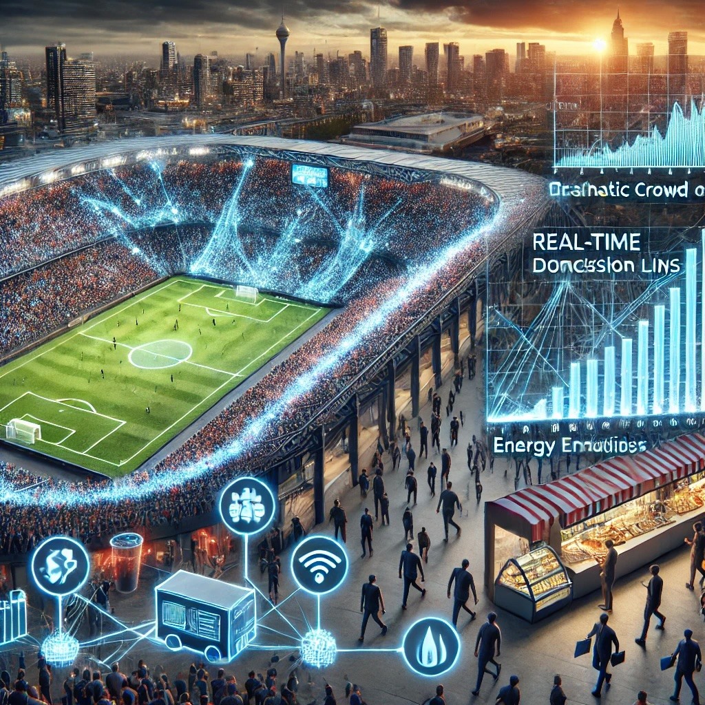A professional sports team is preparing for a major event at their 50,000-seat stadium. They’ve struggled in the past with inefficient crowd flow, long concession lines, and high energy consumption during large events. They seek a solution to streamline operations and improve the overall fan experience.